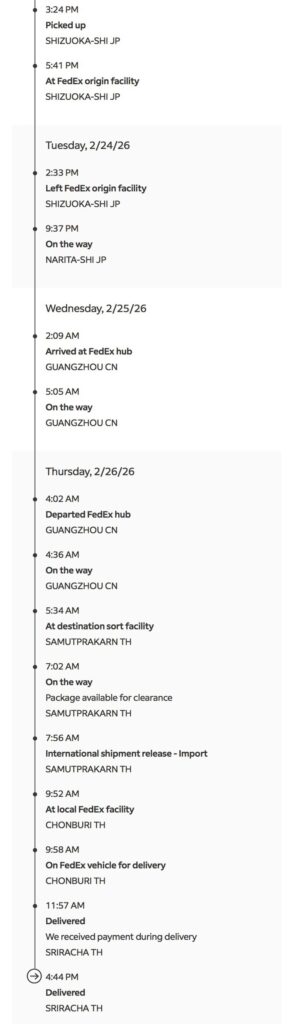 今回は、タイの自宅(シラチャ)まで実際に届くまでのスケジュールや、気になる配送方法について徹底レビューします!
