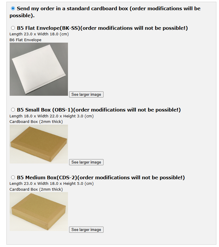 梱包についても様々な選択肢がありました!